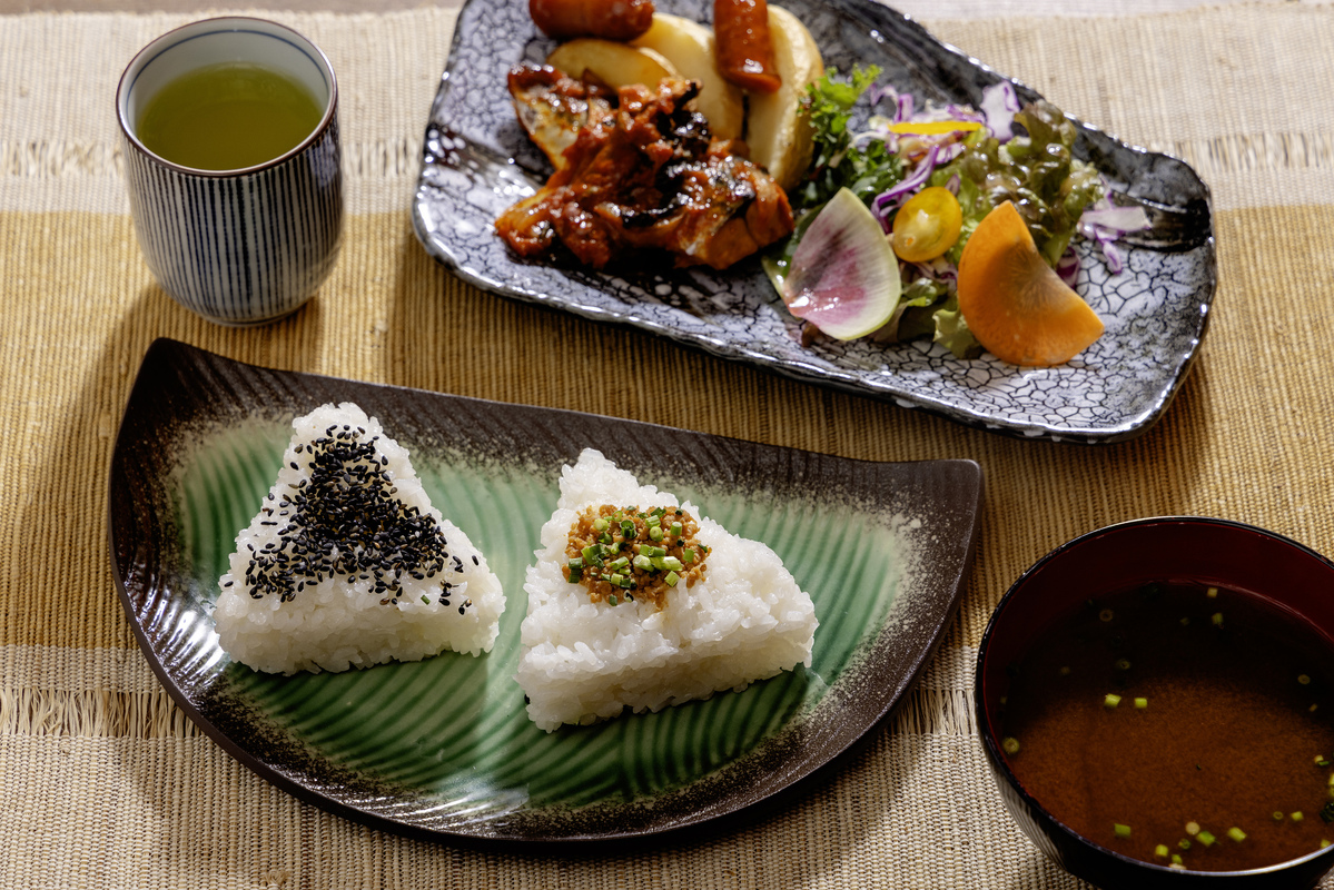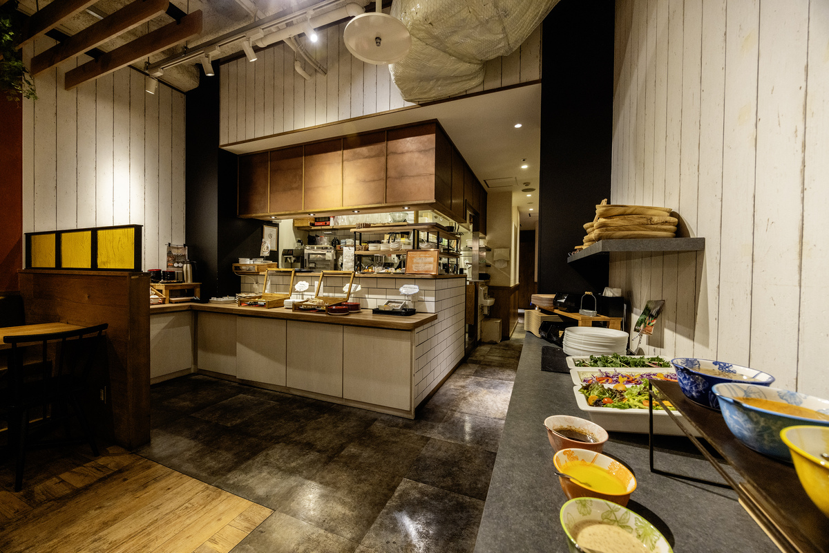 メインディッシュに加え、日替わりデリ、サラダバー、スープ、ソフトドリンクをご用意しております。特製の味噌玉を使ったお味噌汁も自由にお作りいただけます。お好みの組み合わせで、彩り豊かなお食事をお楽しみください。